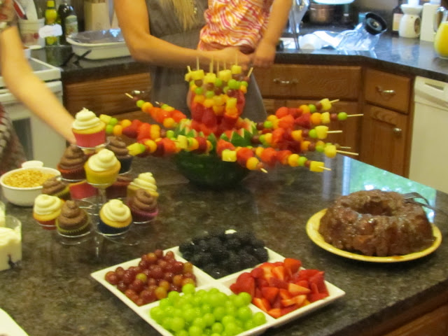 This past Saturday was quite busy!! I had wedding showers, food tastings, and a bachelorette party. First, Sean's sister, Abby, threw me a wedding shower in Boone. It was a brunch shower and I LOVE brunch!! They made egg casseroles, fruit and yogurt cups, fruit kabobs, more fruit, muffins, monkey bread, strawberry lemonade, and cupcakes! I'm positive I had at least one of everything and it was delicious!! Also, it was wonderful getting a chance to meet everyone before the wedding!